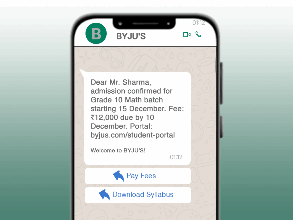 Real Example: BYJU’S Admission Confirmation Template