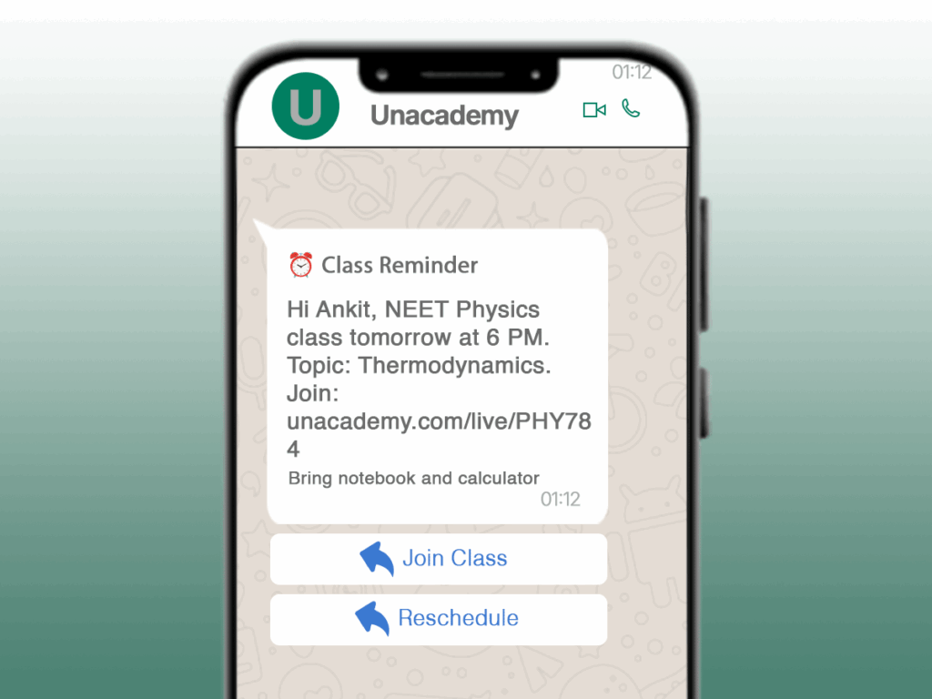Real Example: Unacademy’s Class Reminder Template
