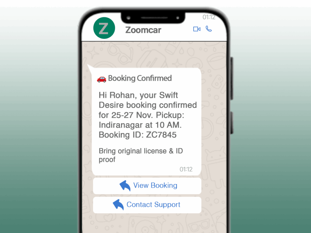 Real Example: Zoomcar Booking Confirmation Template